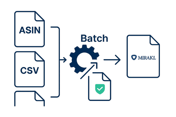 Upload your Amazon ASINs or Mirakl files; we extract, then analyse your titles, descriptions, images, and attributes.